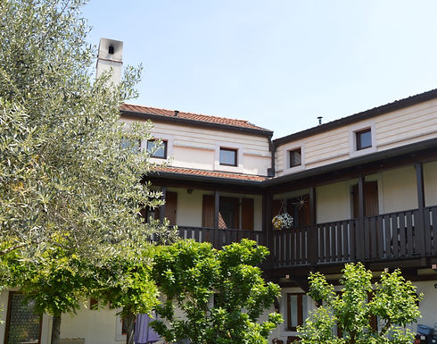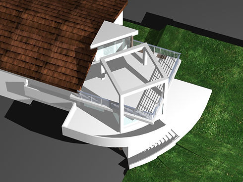 Residenza con una grande terrazza che unisce due volumi che si abbracciano.